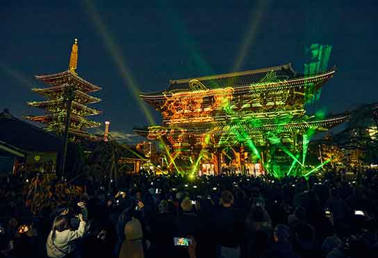 「ASAKUSA CULTURE & LIGHTS 2025」は、浅草寺1,400年の歴史において史上初となるプロジェクションマッピングと、7年ぶりの公開となる通常非公開の「名勝 伝法院庭園」および「絵馬堂」の特別拝観を同時開催したイベントです。