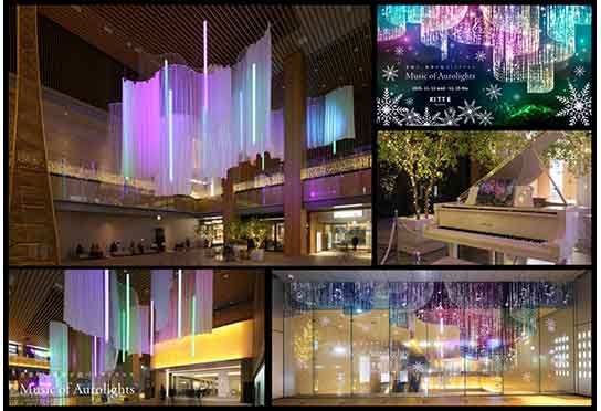 "音楽で、世界が色づくクリスマス"をテーマに、吹き抜け空間を活かした体験型イルミネーションイベントを展開しました。揺らめくオーロラは色を変え、その移ろいゆく神秘的な美しさが、幻想的な雰囲気が広がるクリスマスシーズンと深く呼応しています。