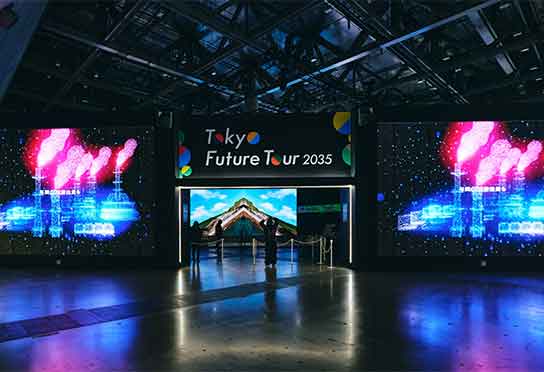 「Japan Mobility Show 2025」のメインプログラム「Tokyo Future Tour 2035」。主催の一般社団法人日本自動車工業会のもと、180社以上の企業・団体と共創して実施。最大の特徴は「モビリティにより変わる10年後の未来(景色や生活)」を構想。最先端の技術やサービスが見られるだけではなく、「未来の住人」に没入し、実体験を伴うことで、一人一人の未来に向けたアイデアやヒントを持ち帰っていただけるツアー型プログラムを構築した。