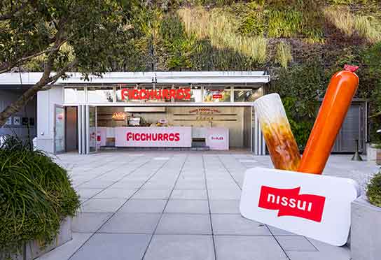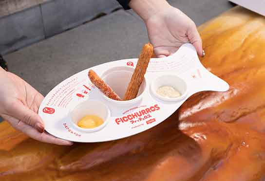 近年、日本国内における食用魚介類の一人当たりの消費量は、過去約20年で半分程度にまで減少しています。その理由として、調理や後片付けに手間がかかることなどがあります。(水産庁『令和5年度水産白書』) ニッスイは、健やかな生活とサステナブルな未来を実現する新しい"食"を創造することをミッションに掲げ、白身魚のすり身を使用した「フィッシュソーセージ」や「ちくわ」など、手軽に食べられる魚の加工食品を長年提供してきました。 同社は、これからの未来を担う若年層に魚の新しい楽しみ方を提案するため、水産庁が定める「いいさかなの日」(11月3~7日)を機に、自社商品の「フィッシュソーセージ」や「ちくわ」を使ったスイーツ「フィッチュロス」を提供するイベントを開催しました。「フィッチュロス」は若い世代に人気のある「チュロス」をモチーフにした新感覚スイーツです。 来場者には「フィッチュロス」2種類とディップソースを無料提供。ディップソースは、8種類の中からお好きなソースを2種類お選びいただきました。 会場には「フィッシュソーセージ」や「ちくわ」、「フィッチュロス」をモチーフにした巨大オブジェ等を設置し、遊び心あふれる空間を演出。また来場者から「魚がもっと食べたくなる新しい"食"のアイデア」を募集し、参加すると「おさかなのソーセージ」1本とオリジナル巾着がもらえる企画も実施しました。