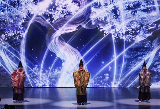 書道や雅楽、マンガ、朗読、音楽など、伝統と現代表現を融合させた演出を通じて、自然と共生してきた感性、自然災害など困難を乗り越え再生してきた経験、人と人との「縁」や「絆」といった日本ならではの思想を発信した。