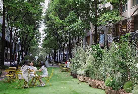 「Marunouchi Street Park」は2019 年からスタートし、より歩行者に開かれた「"人"中心の道路」を目指した、丸の内仲通りの今後のあり方や活用方法を検証する社会実験です。2025年は東京2025世界陸上競技選手権大会の機運醸成も兼ねて9月5日~21日で開催。大会期間中はASICSによる特設エリアを設け、就業者参加型の期間限定コンテンツも実施しました。公共空間を活用した新しい通りのあり方を提供し就労者や来街者の利用満足度向上に貢献しました。